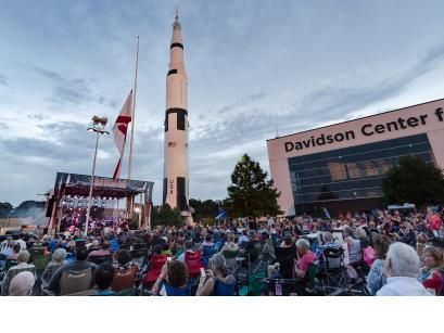 The week culminated with Rocket City Summer Fest Moon Landing Concert on Saturday July 20th, 2019 under the shadow of the iconic Saturn V replica. The Black Jacket Symphony presented “Party of the Year” with music from the 1960s to present. At the end of the evening, the University of Alabama presented lunar images on the Saturn V replica rocket.