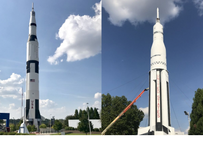 The restorations were done through a combined effort of the U.S. Space & Rocket Center, the community, and generous donors to the Rocket Protector fund. During a campaign to “Revive the Saturn V” in 2019, donors raised funds to restore the Saturn V icon back to its original state. While the U.S. Space & Rocket Center is a Smithsonian affiliate and the visitor center for Marshall Space Flight Center, we do not receive any federal funding for artifact preservation.